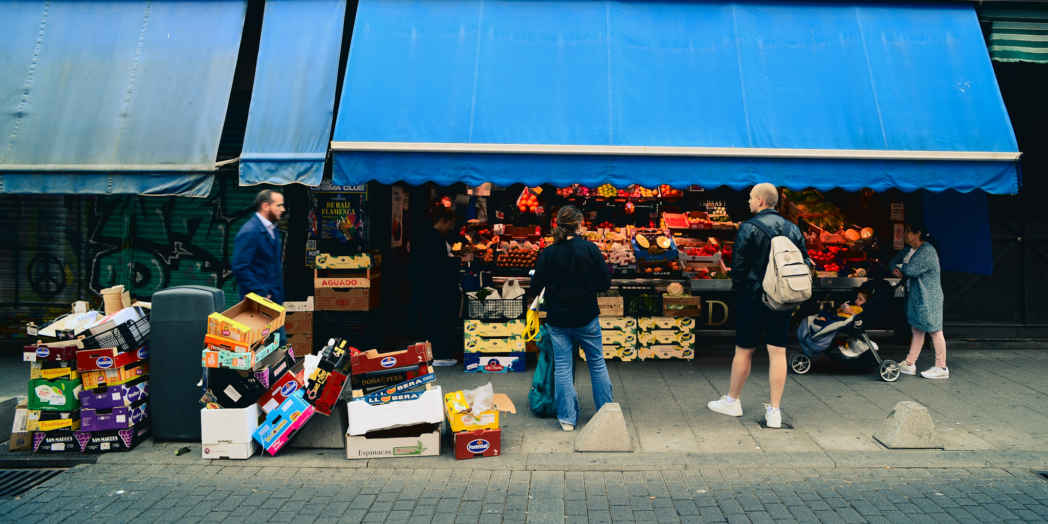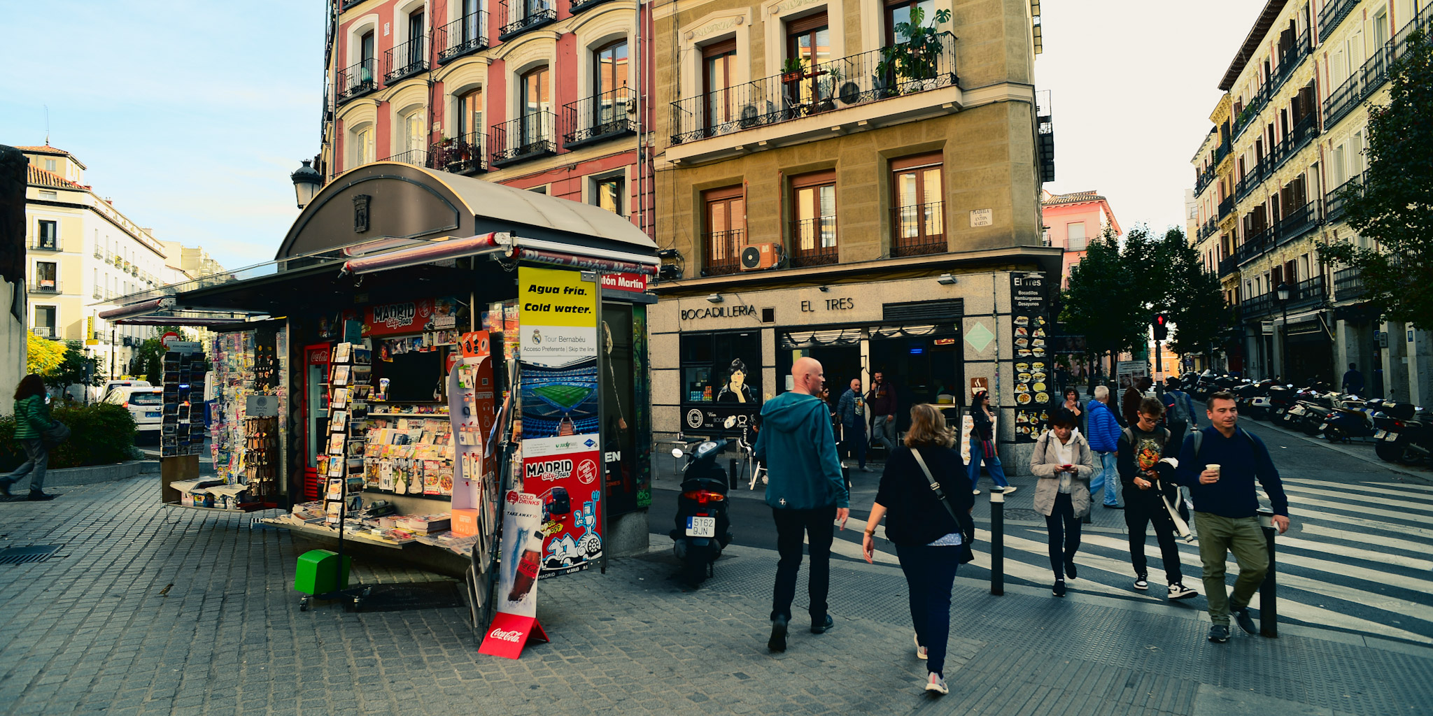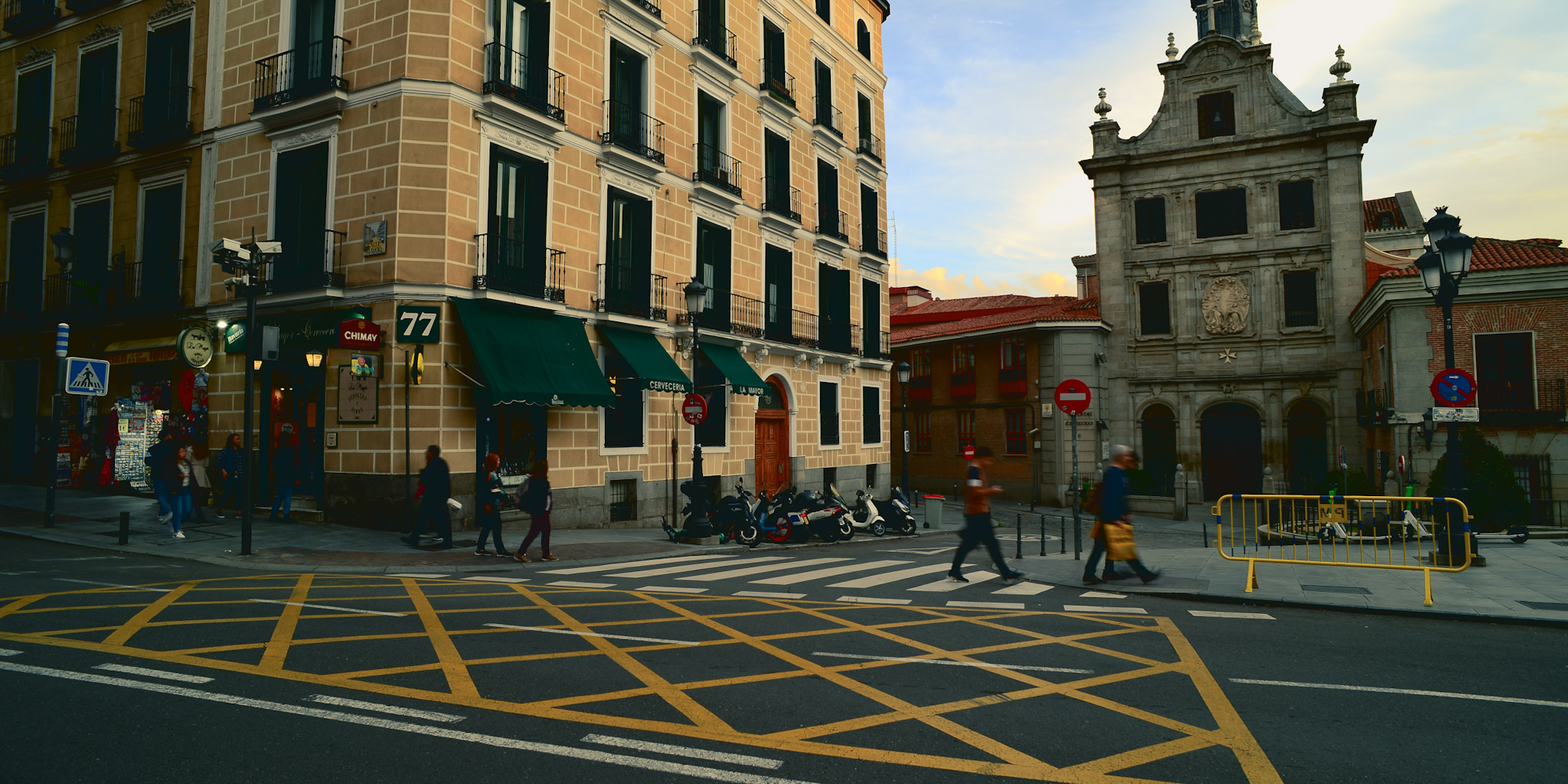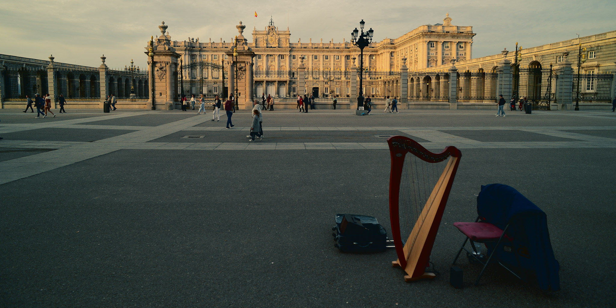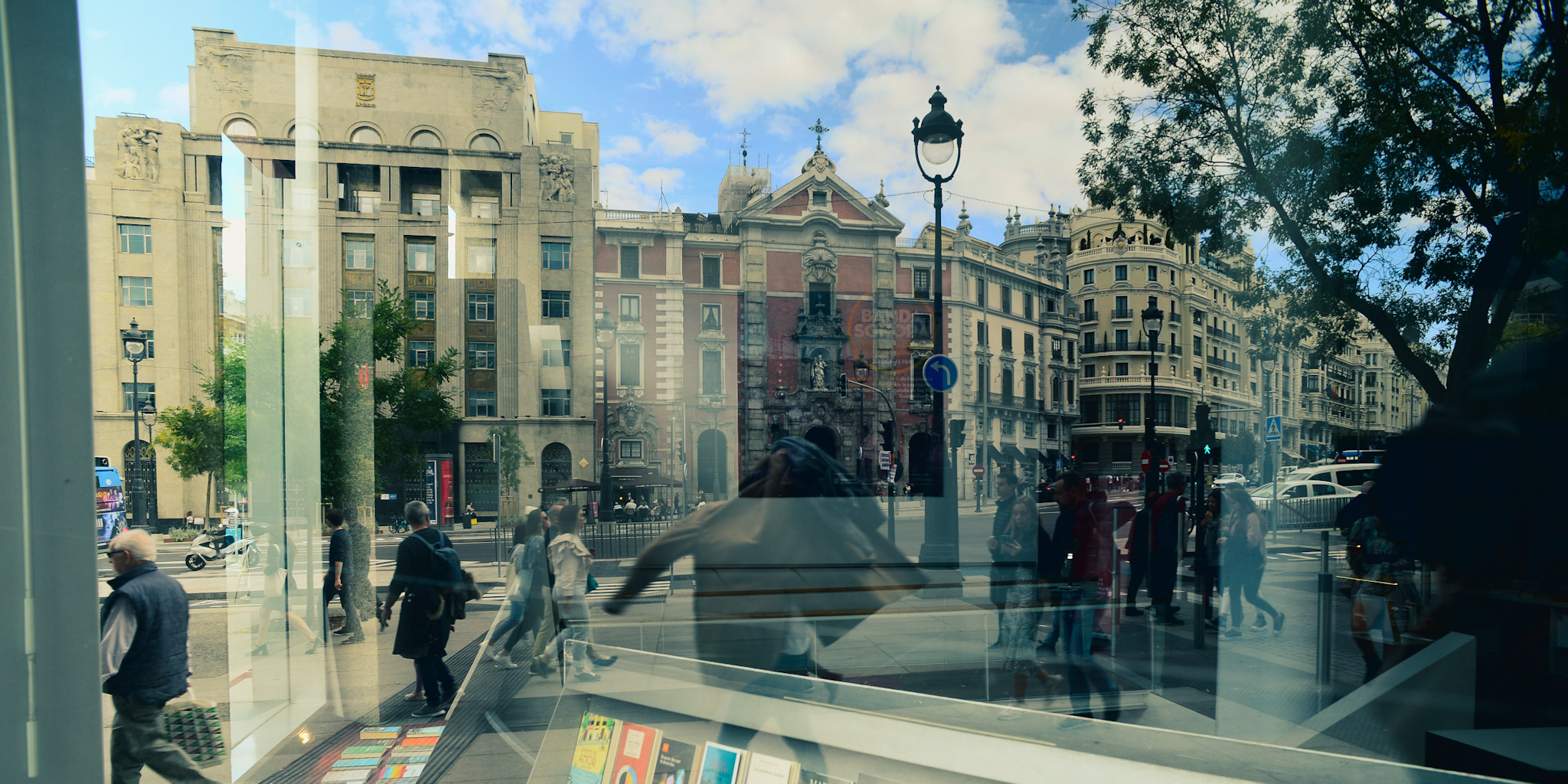 Musik ist schon die schönste Fluchtmöglichkeit. Unter Kopfhörern schalte ich komplett ab und ich kann mich in den lebendigen Strassen wunderbar wegducken. Während ich klein & kleiner werde, wird die Stadt immer grösser & schöner. Ich schrumpfe zu XS. Madrid erstrahlt in XXL.