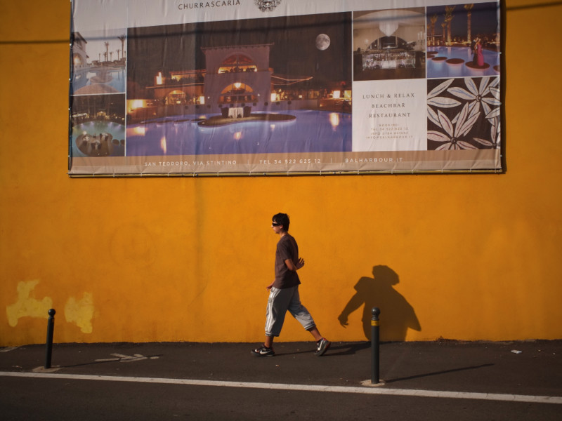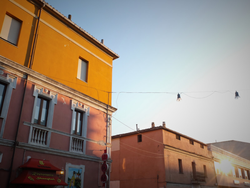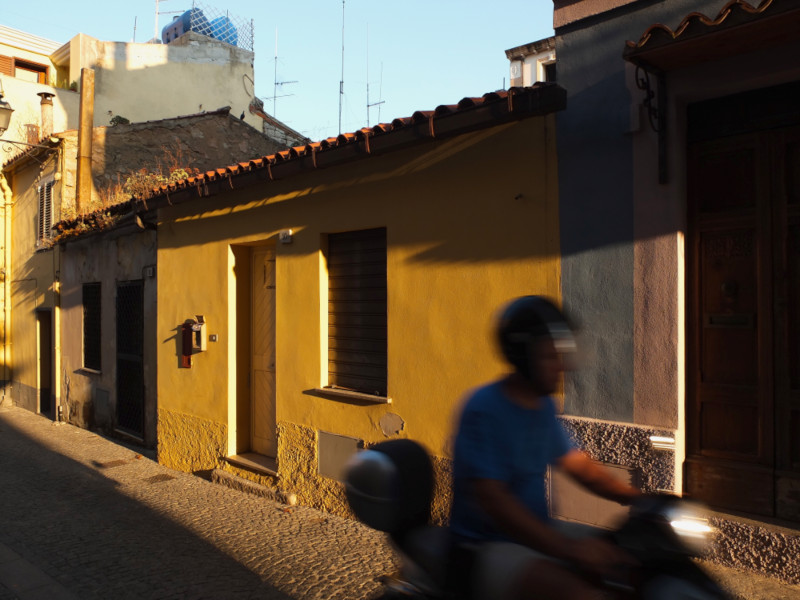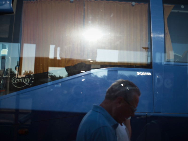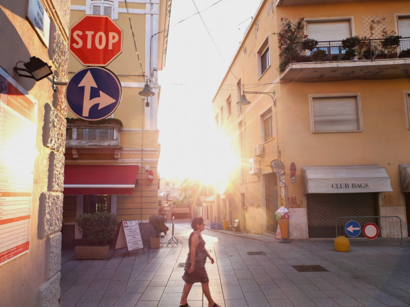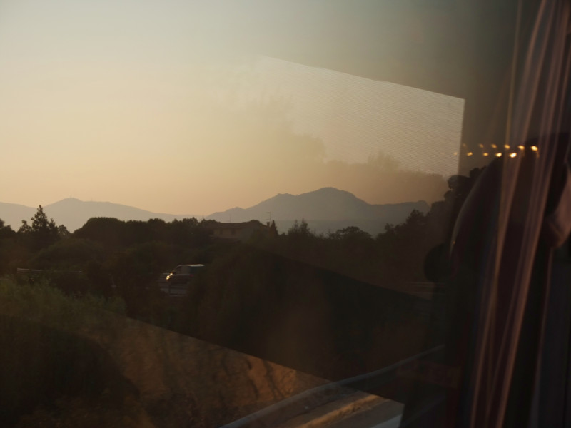 Zugfahren auf Sardinien macht nicht so Spass. Aber mit dem Bus kommt man von Olbia aus einigermassen gut rum. Zu den Badeorten und zurück wird es sehr voll, aber es hat Klima und man sitzt bequem. Auf dem Rückweg in die Stadt werden all die Leute abends wieder eingesammelt, der allerletzte Bus ist gerammelt voll. Es steigen haufenweise Strassenverkäufer mit Bündeln voll von Sonnenbrillen und Handtaschen ein - natürlich nur echte und beste Marken-Ware! An jeder Haltestelle herrscht lautes Palavern und umständliches Ein- und Auspacken. Viel Geraffel um die wenigen Plätze.